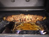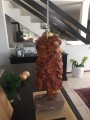 Für den Spieß: 4-5 kg Iberico Schweine-Nacken 2 große Zwiebeln Für die Marinade: 2 Tl. Thymian getrocknet oder frisch 4 Tl. Oregano geturocknet oder frisch 4 Tl. Sumach 6 Tl. Paprika edelsüß 4 Tl. Kreuzkümmel gemahlen 2-4 El. Sonnenblumenöl 1.000 gr. Türk. Joghurt Süzme 3 Tl. Meersalz 2 große Zwiebeln | | Die Marinade: Die Zwiebeln klein schneiden und in der Küchenmaschine pürieren. Den Joghurt unterrühren. Anschließend mit den restlichen Zutaten zu einer glatten Marinade verrühren. Das Öl unterrühren. Das Fleisch am Vortag in dünne (je dünner desto besser) Scheiben schneiden. Die Scheiben mit der Marinade sehr gut und gleichmäßig bestreichen und in einer Schale mind. 12 h (besser 20h) kalt stellen. Auf den Spieß zuerst eine große geschälte Zwiebel aufstecken, anschließend die Fleischscheiben eng und kompakt nacheinander aufschieben, bis alles aufgebraucht ist. Zum Abschluss die zweite große geschälte Zwiebel als Abschluss verwenden. Den Spieß mit den Halterungen mittig fixieren. Herunterhängende Fleischenden mit der Schere abschneiden (diese würden ansonsten im Grill nach unten hängen und verbrennen). Den Grill auf ca. 200° indirekte Hitze vorheizen. Wenn es der Platz zulässt, eine Aluschale mit Wasser in den Grill stellen (dann bleibt der Grill sauber). Den Spieß einhängen und den Deckel schließen. nach 45-60 Minuten kann die erste Lage mit einem scharfen Messer heruntergeschnitten werden. Dazu reicht man Fladenbrot, Rotkohl, Joghurtsauce, 'bisschen scharf', Zwiebeln, Eisbergsalat,....... |